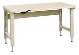 Lyon PP2104E Steel Top Adjustable Ergo-Bench Work Station with Stringer, 72" Width x 28" Depth x 43-3/4" Height, Putty