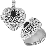 925 Sterling Silver Heart Shape Genuine Black Onyx Keepsake Prayer Box Pendant
