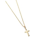 Simple elegance is personified in the form of this 14 karat yellow gold-filled cross necklace. Between the length of the chain and the simplicity of the cross charm, this baby necklace is sure to be a big hit with baby and mom alike. A perfect gift for a Christening or baptism.