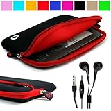 Durable Protective Neoprene Glove Sleeve Cover Carrying Case for Amazon Kindle 3 Wifi 3G 6 inch LCD Display Screen + Hi-Fi Noise Reducing Handsfree Headphones with Mic, Red Trim