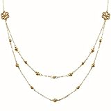 Duragold 14k Yellow Gold Two Strand Flower Bead Pendant, 22"