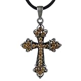 Fleur De Lis Cross Necklace Citrine-Brown Austrian Crystals