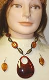 Large Amber Pendant and Other Beads Short Chain Necklace Offered and Earrings