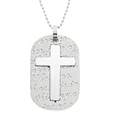 Words of prayer adorn this men's stainless steel dog tag pendant. A stylish accessory and a handsome expression of faith, it's detailed with a bold cross and comes complete with a 22-inch stainless steel bead chain. Durable, affordable, and easy to care for, stainless steel is an attractive jewelry metal choice.