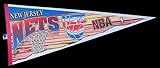 Here is a Genuine Official NBA Nets Pennants. Every pennant has their official logo on it and is very decorative with vivid colors. The official NBA stick is on the back of each one. This exact pennant design is no longer available and is very hard to find (except from us). Which makes this a great collector's item for any New Jersey Nets fan you know...