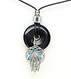 Onyx and Diamond Cut Pewter Pendant Necklace - Dream Catcher