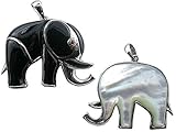 Onyx Royal Elephant Pendant with Ruby Eye and Mother of Pearl Backing, 925 Sterling Silver. Long revered as a symbol of power, strength and royaly in many of the world's cultures, an elephant with it's trunk facing upwards is considered extremely lucky. This is a beautiful hand-crafted elephant made with Sterling Silver and genuine Ruby eyes. All of our sterling silver are rhodium plated so the finish is brighter, longer! Because the stones are real and hand-cut, the actual item may appear slightly different than pictured.