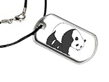 Panda - Military Dog Tag Black Satin Cord Necklace