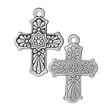 Fine Silver Plated Charm. Lead-free Tierracast Pewter. 29.4mm Tall, 21mm Wide . 1 Charm. This lead-free pewter item is plated with fine Silver. The "Talavera Cross", DÃa de los Muertos pendant is enhanced by a slightly antiqued finish. Quantity: 1 Charm (image shows front and back) Measurements: 29.4mm tall Including Loop, 21mm Wide, 2mm Hole. TierraCast Pewter is made in the USA, using Lead Free Pewter that exceeds both the CPSC standard and the new California law regulating children's jewelry content. Although all pewter contains trace amounts of lead, the term "lead free pewter" is used to describe pewter that meets the stringent CSPC standard of less than.05% (or 500 parts per million) lead content in pewter.