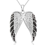 Angel-wing pendants are a popular pendant style, often worn as the representation of security and protection. The Sterling Silver Black and White Angel Wings Diamond Pendant reveal a modern combination of black and white sparkle at the base of an 18-inch rolo chain. The layered wings are coated in a display of black and white diamonds for a sparkling finish. The diamonds reveal I-J color and I2-I3 clarity, making up 1/2 cttw.