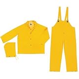 611-FR2003X3 Features: -Black plastic snap storm fly front.-Black plastic take up snaps at the wrists, waist and ankles.-No underarm vents.-Reinforced crotch. Specifications: -Size Group: 3X-Large.-Material: PVC/Polyester.-Thickness: 0.3500 mm.-Color: Yellow.-Includes: Jacket w/Detachable Hood, Bib Pants. Additional Info: CLASSIC .35MM PVC/POLY FLAME RESIST SUIT 3 PC YW Cost is for a min. order of 1/EA UNSPSC: Testing Approvals: Meets the ASTM D-6413 flame resistant standard