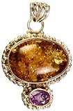 Amber Pendant with Faceted Amethyst - Sterling Silver
