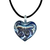 Celebrate her special September birthday with the Sapphire Colored Murano Glass Heart with Pure Platinum Pendant. A breathtaking 1.5" by 1.25" Murano glass pendant rests off a dark silk cord. The unique pendant features swirls of Blue-Sapphire color that is infused with pure platinum flakes, allowing the glimmer of platinum to shine throughout the pendant. Because each glass pendant is hand-blown in Italy, each piece has its own unique look. The sparkle of the glass-blown heart makes it a dazzling addition to your jewelry collection.