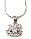 Small Kitty 1/2" Crystal Pendant and Necklace - Rainbow Multicolor Flower Bow