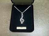 Sterling Silver Treble Clef Charm with box, chain, and necklace. Value priced custom jewelry cast in sterling silver. Price is determined by the actual weight of the instrument replica. All of our merchandise is of excellent quality and is guaranteed to be .925 Sterling Silver unless otherwise noted. Sterling silver manufacturers use a variety of techniques to minimize tarnishing (such as a rhodium finish), hence finishes may vary. Fine silver (99 pure) is generally too soft for producing large functional objects, and in Sterling the silver is usually alloyed with copper to give strength whilst preserving the ductility of the silver and a high precious metal content. Sterling silver is an alloy of silver containing 92 pure silver and 7 other metals, usually copper.